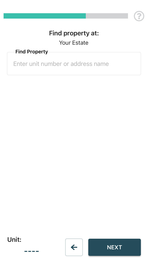 - After installing the app, you will be asked to search for your estate. It allows the app to identify the OneSpace estate you wish to enroll on.