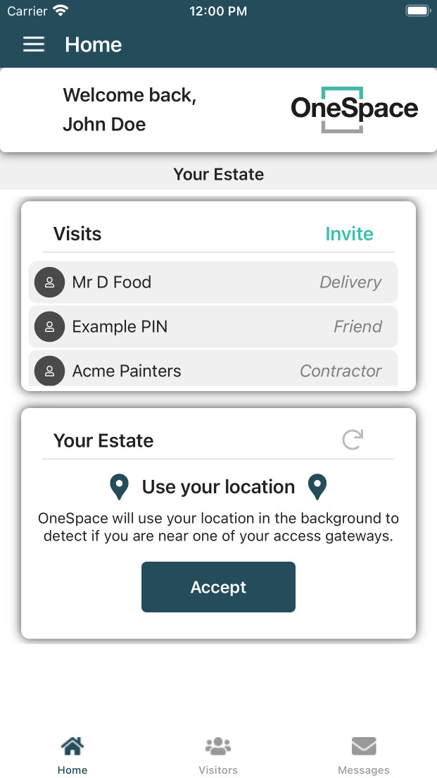 - You can now start using the app to invite visitors, or you can add the phone as an Access Device, allowing you to use it to gain entry to the estate.